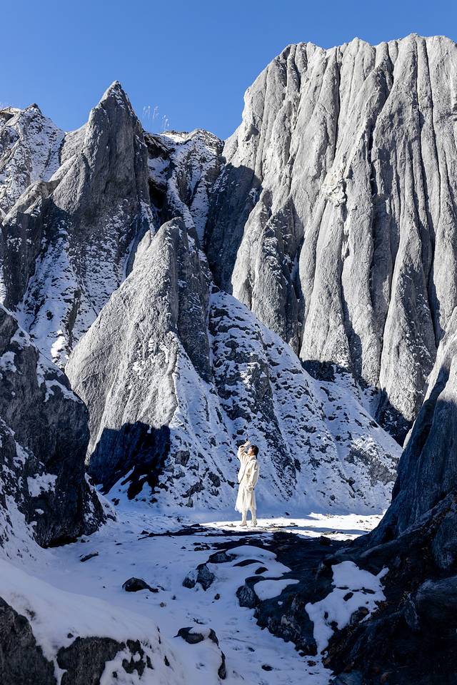 八美的墨石公园,可谓一波三折。第一天因为川西下雪,我们还觉得运气不错,终于能看到雪景了,还趁早赶到墨石公园,结果被景区工作人员告知“因为下雪上山的路和栈道都被雪覆盖比较危险,暂停开放”,笑妍可是最期待墨石公园。第二天我们依旧不甘心,早上继续前往墨石,刚开始也是被告知今天可能也不开放,我们正准备离开,景区突然告知可以从后门进入,但是需要徒步,瞬间峰回路转。