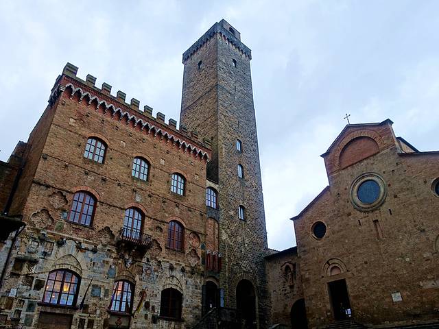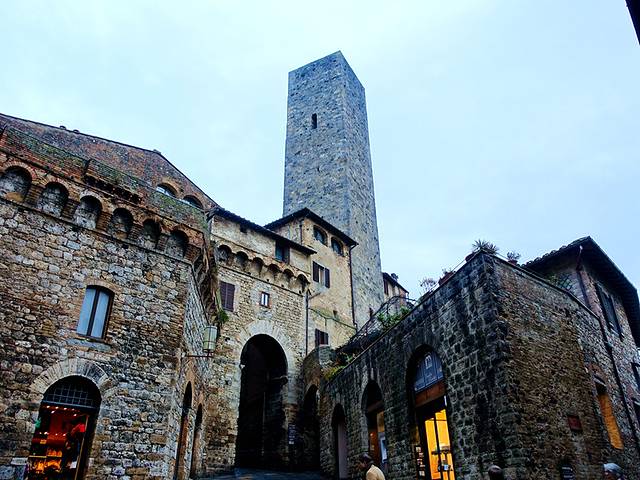 古城里随处可以高耸的塔楼,有点像中国四川丹巴和理县等地的藏羌碉楼,但是他们的作用不是防御,而是当地贵族为了显示自己的权利和财富,竞相修建塔楼,前后一共建造了72座至今保留14座,正是这种我们无法理解的竞争,为今天的古城留下了独特的印记。