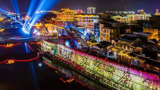 宏伟城门旁城墙上幻彩的光绘暴露了,没错,这里就是有“客家首府,大美汀州”之称的长汀,也叫做“汀州古城”。