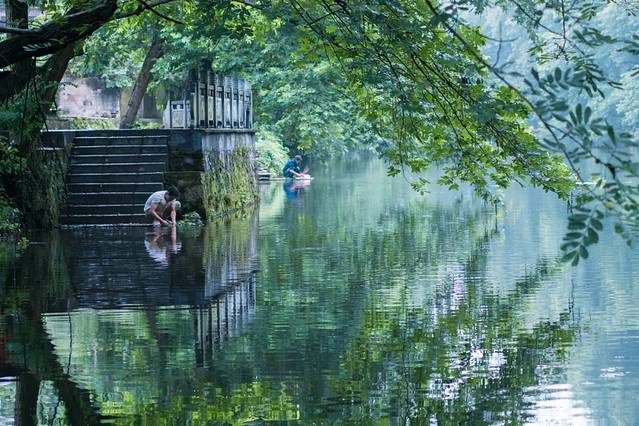 院内的水景不错,湖泊旁停着小木船,夏天还会有荷叶,可以从长廊的木窗外取景拍照。