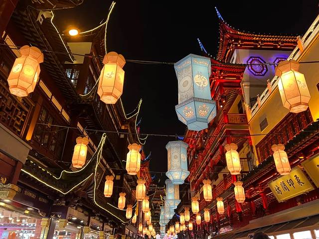 中午出发,下午到豫园站刚好可以听个讲解,赶上看灯。小蓝车有多好玩?来看看上次我写的:《逛了5小时,我才知道哪里才是上海的好地方》。