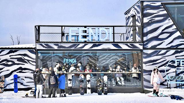 最近山顶的FENDI pop-up咖啡厅非常火,不滑雪的话也可以来上面喝杯咖啡看看山顶风景拍拍什么的。