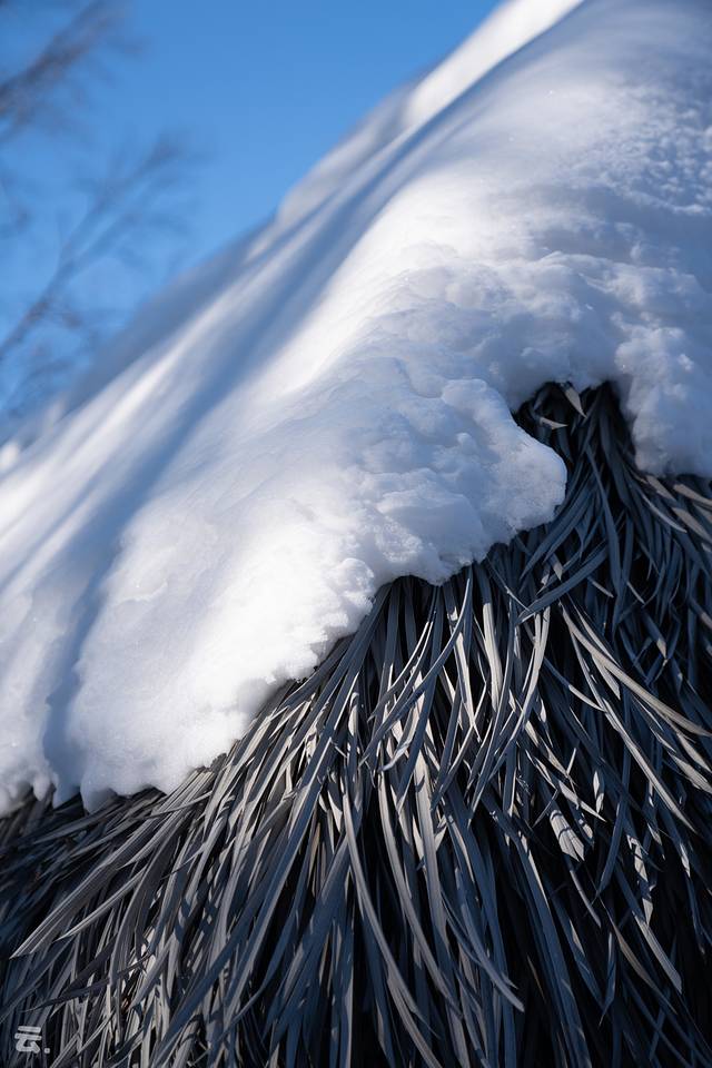 这间木屋的顶非常特别,是用厚厚的草堆覆盖而成,又积着雪,好可爱。