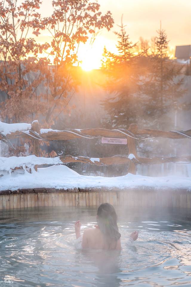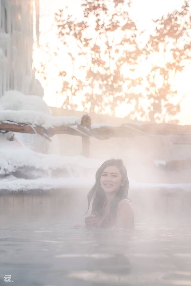这里的温泉池分室内和室外,室外有好几个大大小小的池子,每个池子旁都标注着水温和特色,一般室外的池子温度在38-43度左右,试想一下,在零下二十多度的气温一下跳到42度的水温里的奇妙感受!真的超爽!