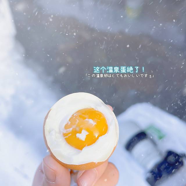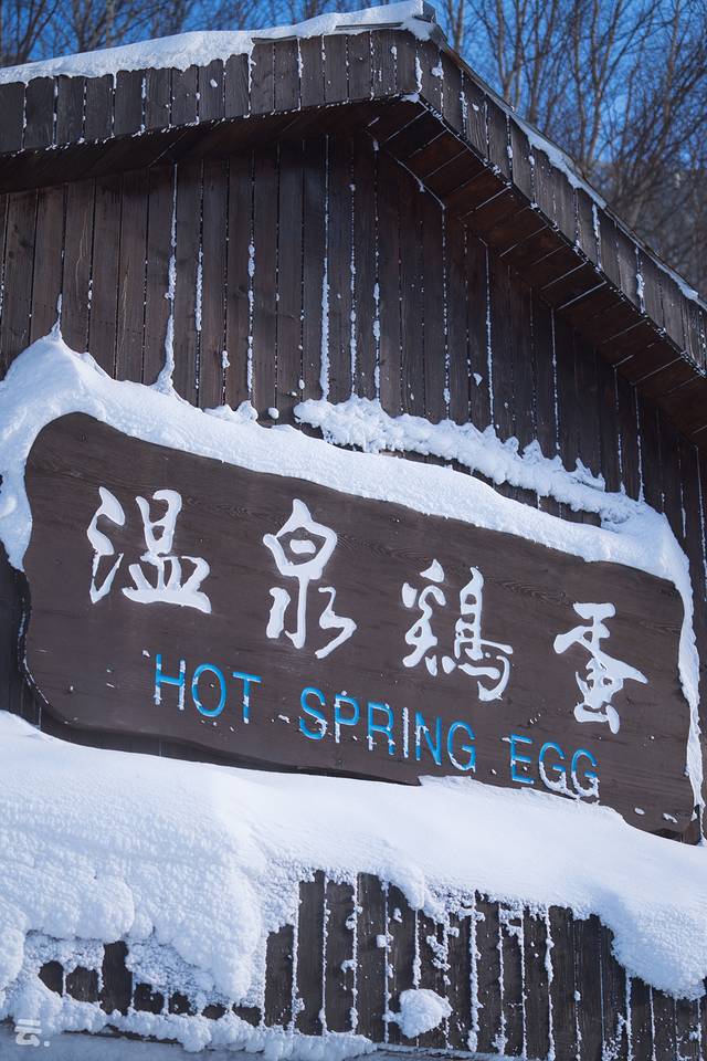 终于到达中间的休息平台,赶紧躲进去取暖,旁边的温泉鸡蛋冒着热气,说这个都是用温泉水煮的,里面的蛋黄熟了但是蛋白还是流动的。