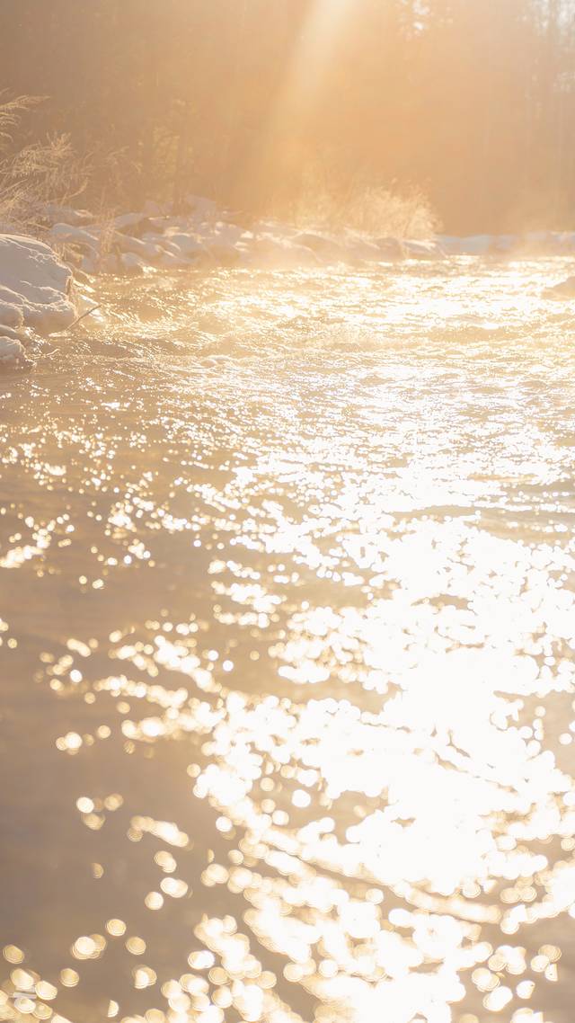 木屋前的河上晨雾弥漫,金色的光芒晃了我眼。