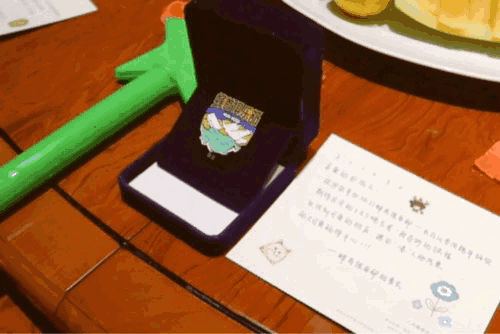 桌子上还摆着写着各自名字的马蜂窝徽章,卡片和荧光棒!好用心!
