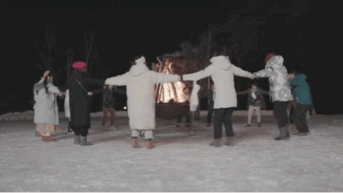 篝火点燃之后大家都围在一起,听着新裤子的「你要跳舞吗」,跟着音乐摇晃,把烦恼通通丢掉。