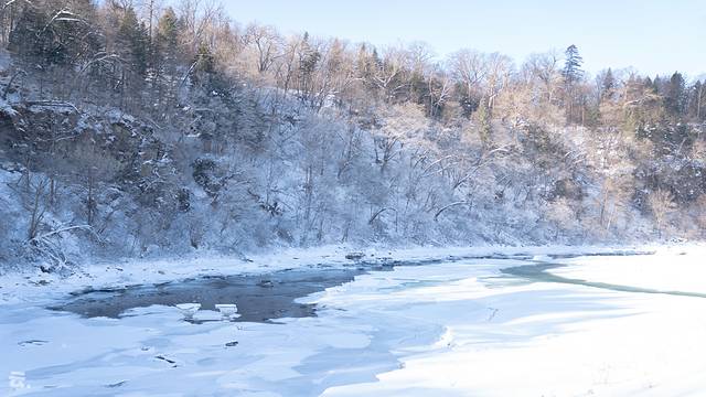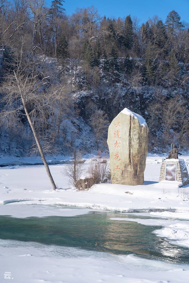 拍了会儿总觉得有什么不一样的,岸边的树枝都是黄不拉几的,不像网图那样被白茫茫雾凇环绕。
