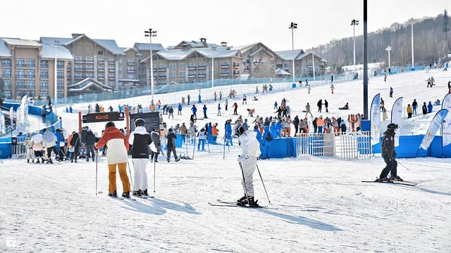 饭后回到鲁能滑雪场,雪具大厅就在瑞士酒店旁边,从酒店大堂坐接驳车过去5分钟。