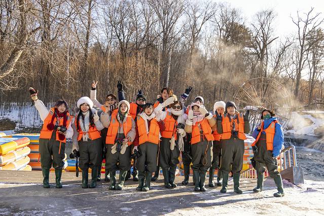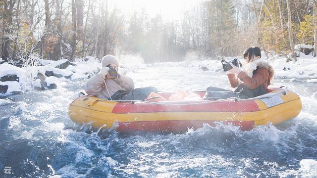 最后一天的雾凇漂流大家期待值都很高,虽然昨晚聊到深夜,一大清早所有人除了包子都起来了。