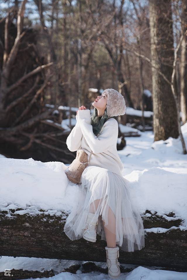 我一般是长款羽绒服+毛衣+保暖内裤+光腿神器+裙子+雪地靴的组合