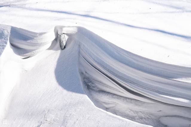 这里的雪因为没有什么人来,所以积得很厚,显现出波浪形的纹理。