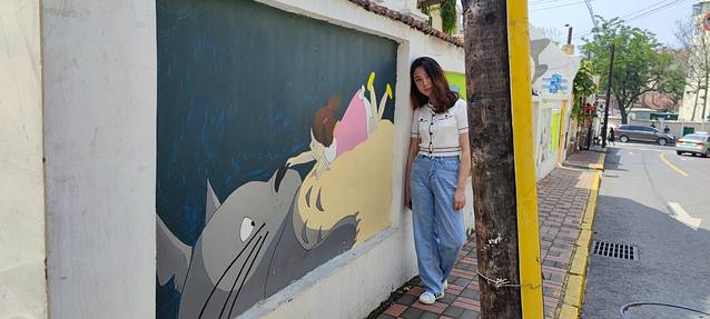 公交经过网红墙
