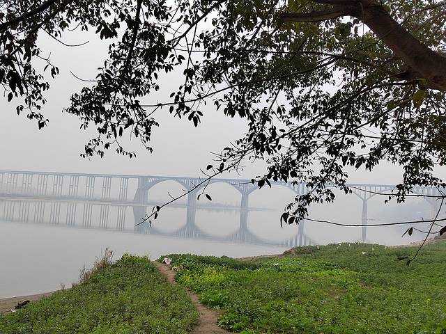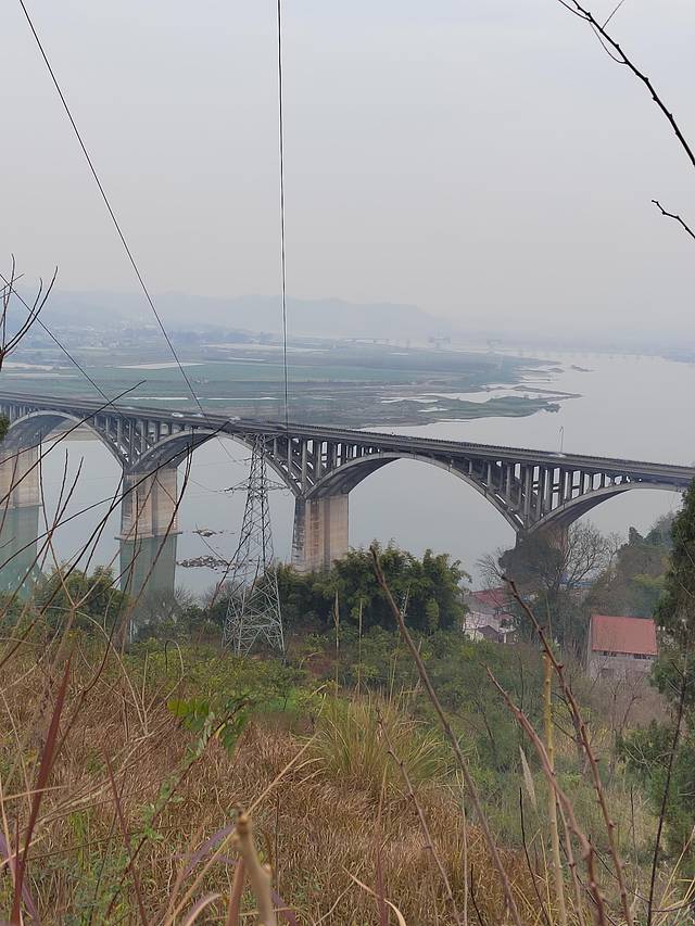 午饭后,我在他们收拾的时候,抽空出来爬上我第一次来这里时爬过的山。山路不好走,上到顶上遥望雄伟的涪江大桥。到傍晚的时候,亲家家人大部分到齐,大约十八个人。亲家母和孩子们帮助掌勺,饭菜分两桌全部上齐后,众人在中央电视台直播的春节文娱晚会气氛的渲染下,开始频频碰杯,尽情宣泄一年来心中的喜怒哀乐,满怀希望地互致虎年快乐,迎接虎年的到来,然后等待午夜零点的降临。