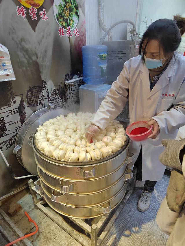 街上有店铺开门了,这家老字号的白糖蒸馍吸引了我,离开阆中前一定带一袋会去,是现蒸装袋的,10元10个,保质期五天。柜子里有真空包装的,据说可以保存几个月。