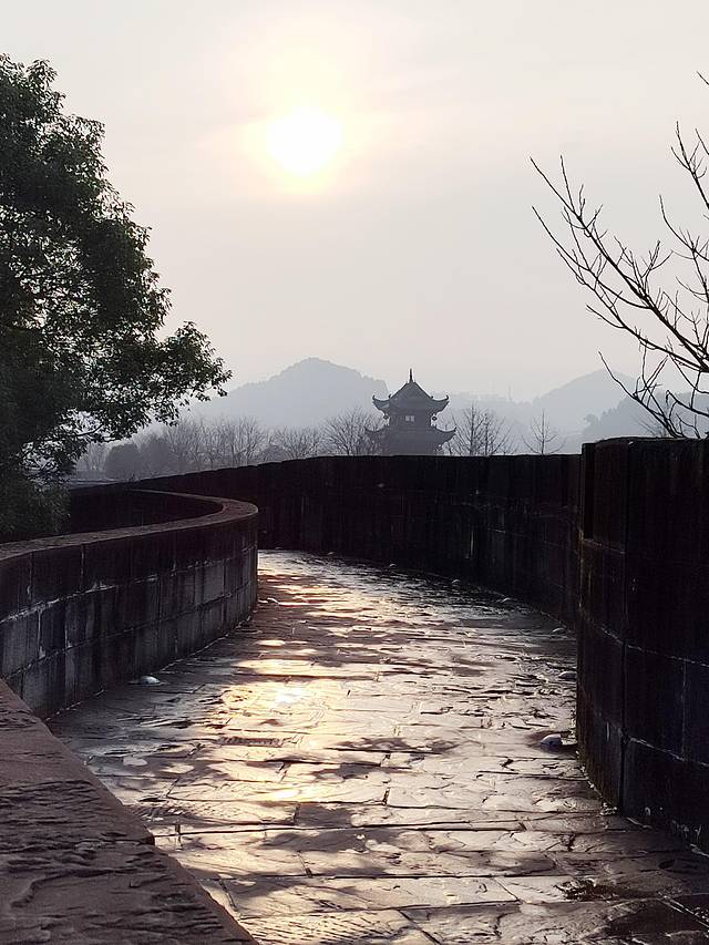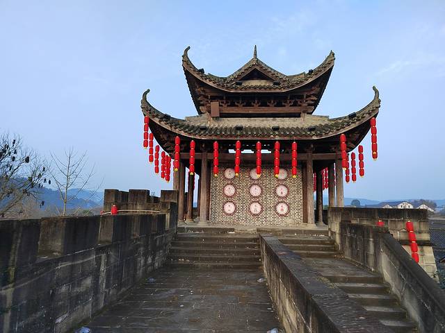 下午我去阆中玩,因为阆中是春节的故乡,年味肯定十足,我也想体验多年没有过的这种年味气氛。到阆中后住在网上预约的一座客栈,离华光楼很近。偶尔有点小雨,但是古城仍然特别拥挤。走在穿梭的人流中,品特色小吃,观赏夜景和中天楼上的“抛绣球招婿”的节目。回到华光楼后到嘉陵江边,看到把两岸连接起来的一座浮桥,对岸是张飞曾经驻守过的南津关城楼。