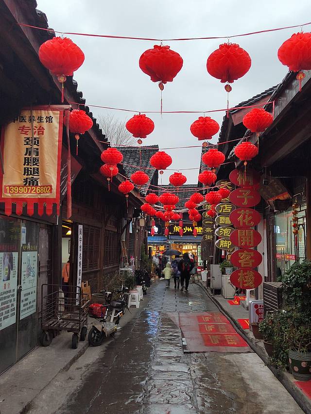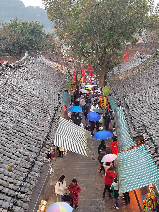 再过一天天气放晴,我又登上华光楼,到江边码头看一只小团队组成的舞龙队在我面前飞舞,然后过浮桥到对岸码头参加歌舞表演。逛过南津关古镇后返回后,又花个把小时乘上游轮观赏阆中嘉陵江和两岸风景。之后便是到古城内的个景点观光,有落下闳博物馆、风水博物馆、文庙、川北道署、贡院、张飞庙等等,所有景点全部开放,还看到了春节特有的张飞巡游。晚上选了蒸馍、张飞牛肉、酥脆麻花等几种阆中特产,准备带回成都。这一个大年真是年味十足,玩得十分尽兴。