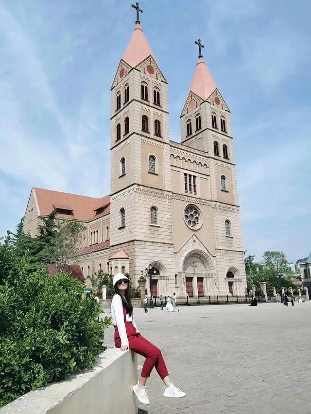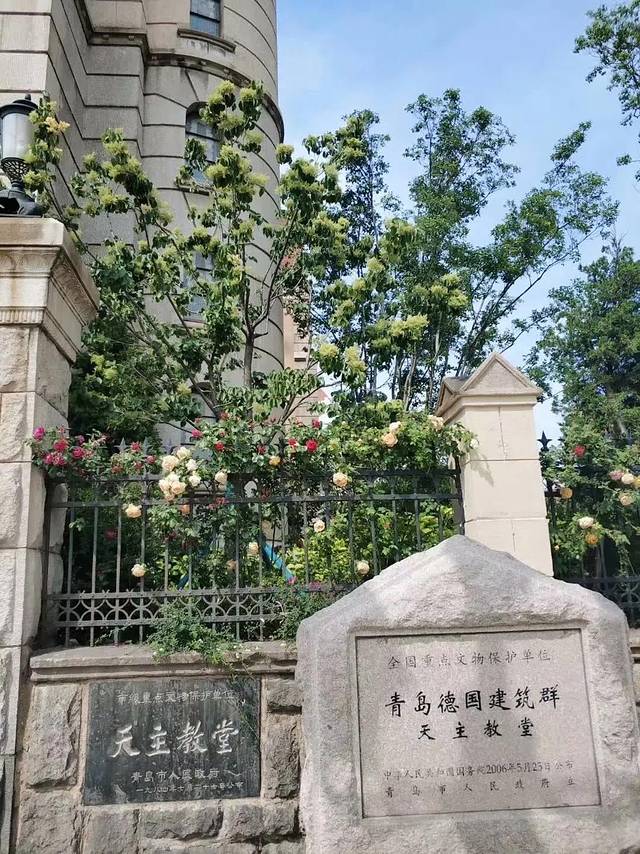 圣弥厄尔大教堂,又叫天主教堂。这也是青岛的地标,街边的紫藤和黄花,教堂下拍摄婚纱的新人,附近还有很多服装饰品小店,无处不氤氲着浪漫。