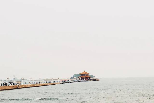 顺着人群慢慢走,从海岸深入弯月般的青岛湾,缱绻在柔柔海风中的栈桥就映入眼帘。