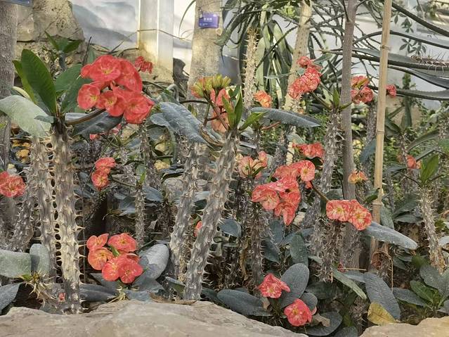 北京城里在开春儿前,室外的花儿,尤其是木本花卉,还都未萌动,给人萧瑟之感。我们先趁着春节的喜气去绿意盎然的温室吧。在午后和煦的阳光里到京西香山脚下的植物园(南园)中走一番,欣赏满园春色 。