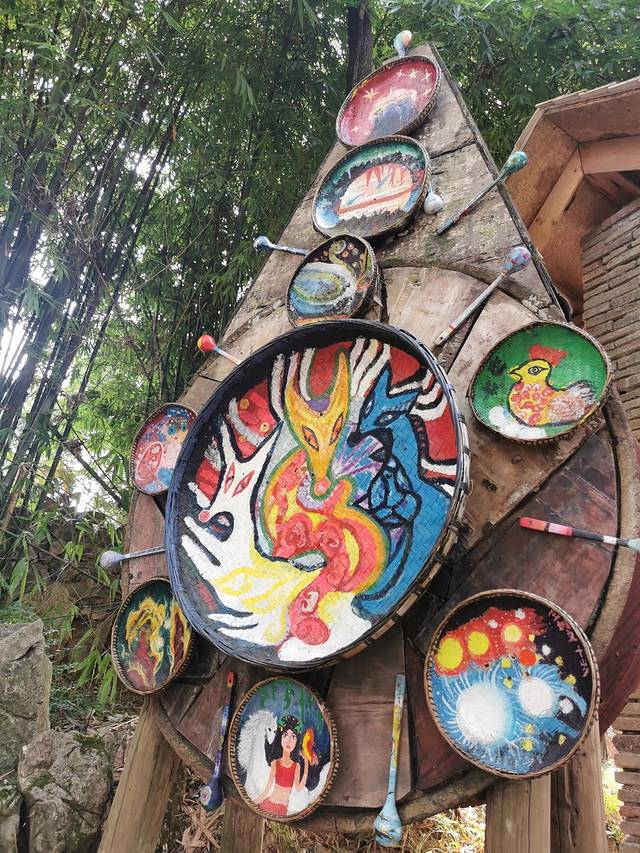 这绝对是我今天的重点推荐,因为没时间去千户苗寨和看黄果树瀑布。所以我就近的选择了这个景点,没想到居然挖到宝了。这个景点全部都是由贵州著名艺术家宋培伦所创作的。这里有石头建筑、雕塑和陶艺等各种,底下有图可参考。门票20元,也确实是很优惠了,里头有制作傩戏面具的叔叔,还有在弹吉他的小哥。重点来了,有一家小店,挂满了风铃,就非常日式,一个小哥哥帮婆婆在弄小店铺的生意,小哥哥也长的很日式加风铃的声音,我默默的看了十几分钟,然后怂恿我的小伙伴去买了根冰棍。景区里头就有种很自由的感觉,就自由创作,皆可艺术。