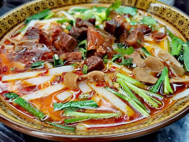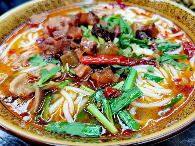 因为我住花果山,所以就在小区楼下吃的饭,那个糯米饭居然是辣的,好开心呀,还有那个酸萝卜,是我们点了面老板送的,实不相瞒,我们干了两碟,觉得比面香,当然面也还行,盖不过萝卜就是了