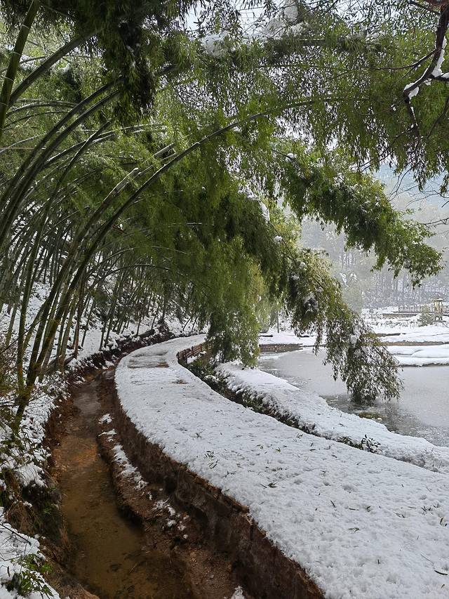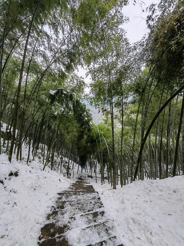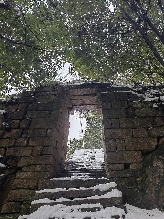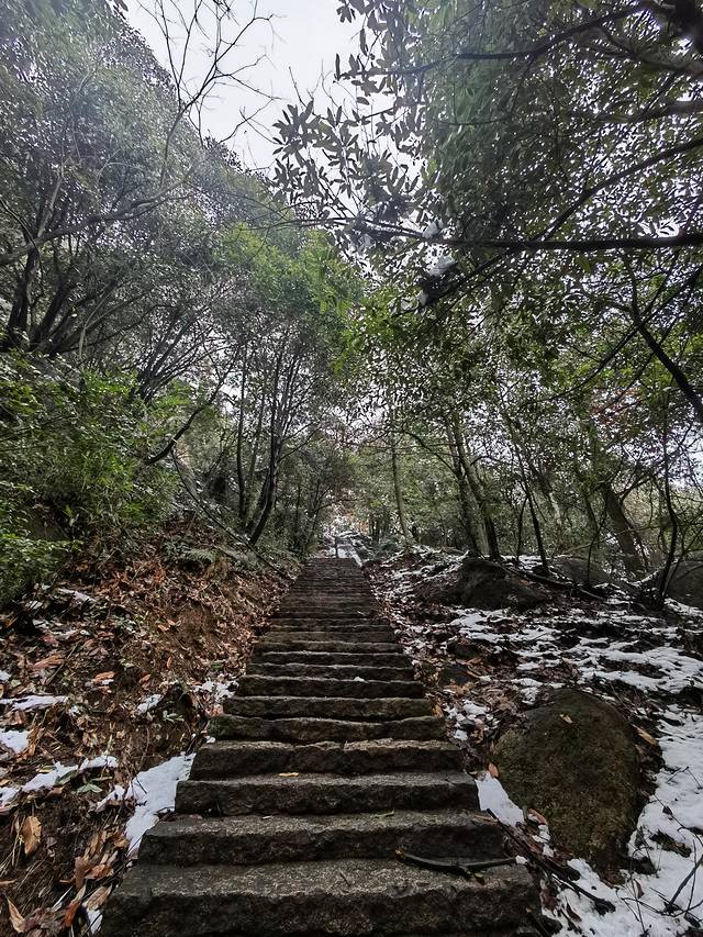 山路的积雪还未完全融化,有些台阶需要手脚并用,