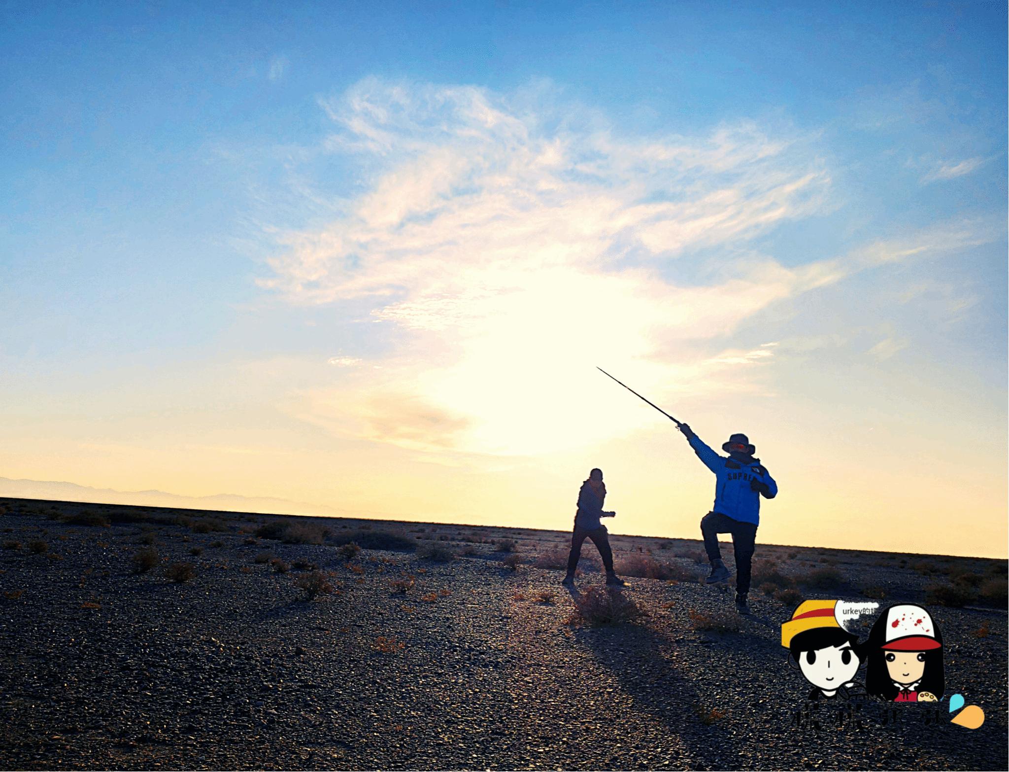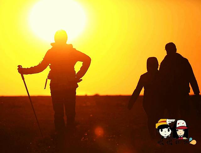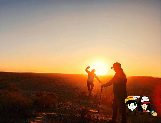 但是这夕阳真的是绝了呀,痛恨我无法用言语形容,手机也拍不出它的旷世之美。我们不再赶路,而是一边走一边玩了起来。队伍最后的救援车也早已跑到我们前面,领队拿着望远镜看我们走到哪里,而后对讲机传来:“你们是在华山论剑吗?"(忘了具体是哪个词汇了,逗笑了一群人)