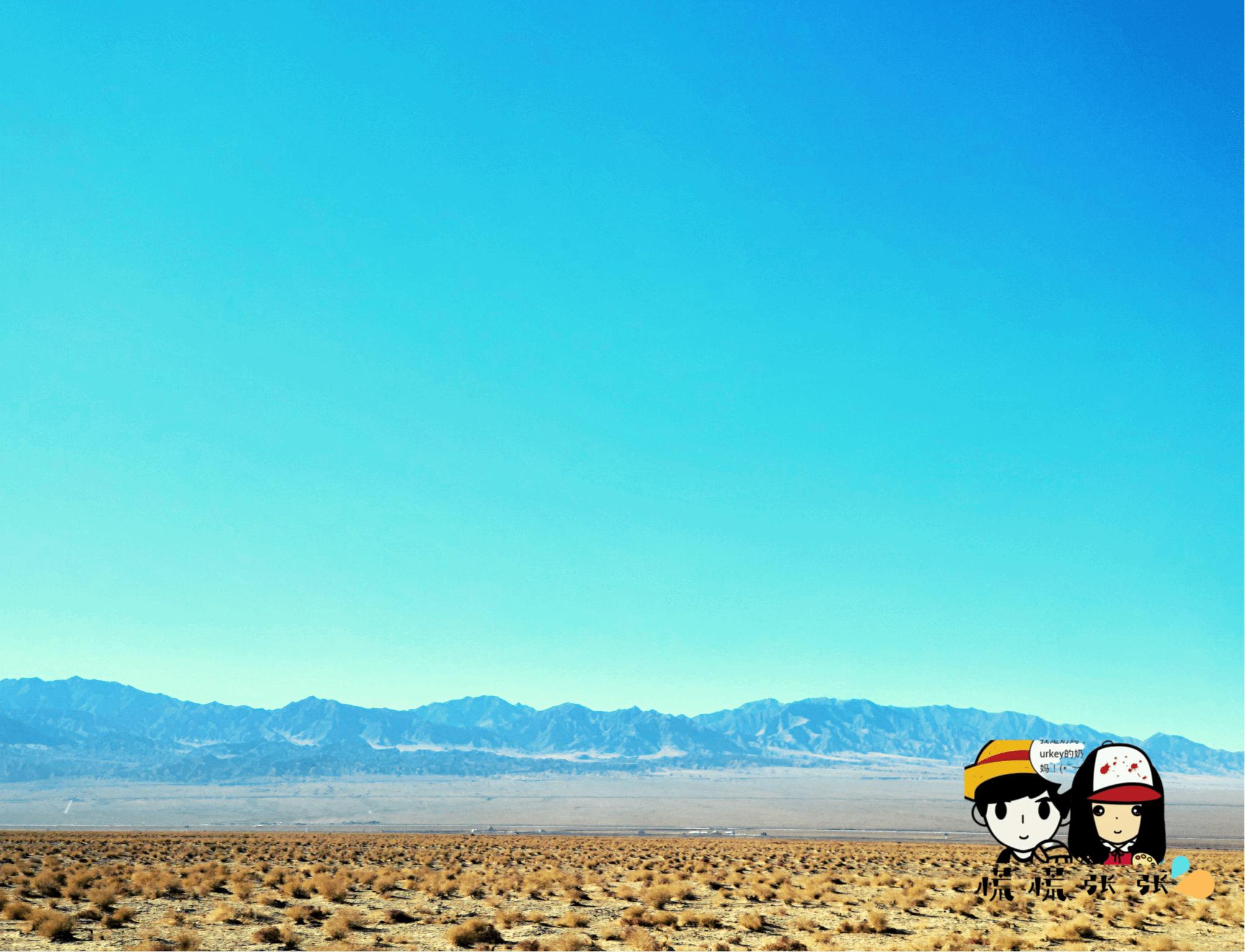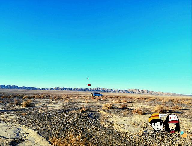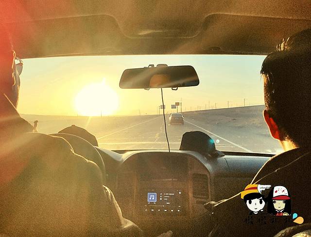 我们似乎就在一个大碗里行走,怎么走好像都还在碗里,远处的山依然在侧,一动不动。看着车呼啸而过,几分钟就能到的 车程,我们要花十几分钟,几十分钟。好不容易靠近些,它好像跟我们玩游戏似的,又远离了我们好几公里。翻过眼前的那一座小山丘,在它的前面还有一模一样的小山丘,永无止尽。走出沙漠之后,一天都是一样的风景。