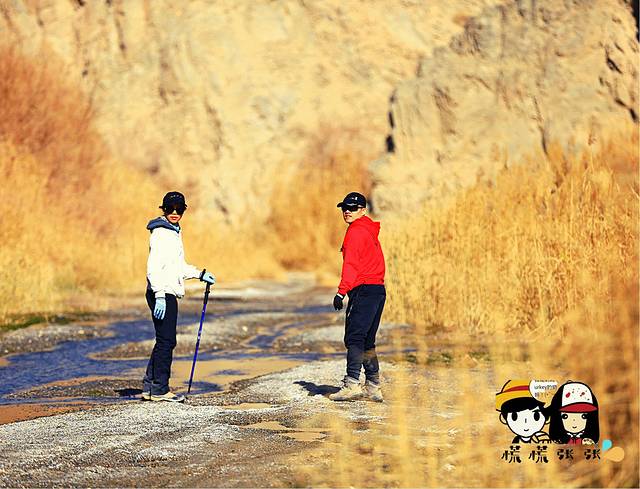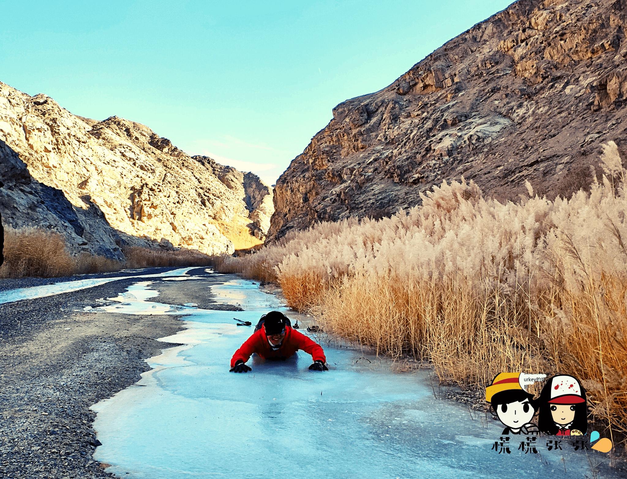 有些溪流结了厚厚的冰,南方人的喜悦哈哈,在上面溜冰不成问题