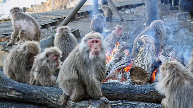 在冬天的双休日节日里,可以看到围着篝火的猴子们。原本动物就害怕火,但这里的猴子却有在寒冷的冬天烧火的习性,有时也会烤白薯。猴子吃热烤红薯,你会被它治愈!