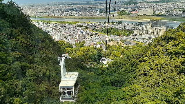 抵达岐阜站,来到金华山乘坐缆车。这段缆车连接了岐阜公园和金华山山顶站,时长约4分钟。被原始森林覆盖的金华山和长良川的自然美景、岐阜市的街道可尽收眼底。夏季夜间也运营,吸引了很多游客前来欣赏夜景。