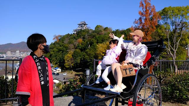 悦奈和宝宝从从名铁名古屋站乘坐电车约25分钟,就来到了犬山站。犬山市在爱知县的西北部、浓尾平原东部,以国宝犬山城为中心,遗存着17世纪古城工商业区的气氛。犬山城又称白帝城,建于16世纪前半叶,是日本最后一座个人拥有了城堡(到2004年)。上面的望楼天守阁是现存望楼中历史最久的样式。城堡下面有奥村邸,它将当时商家建筑的模样保留了下来,还有乐苑、饲养鸬鹚等各种传统建筑物和民俗活动供人参观欣赏。
