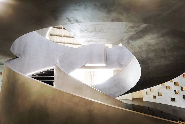 从整体建筑的形体方面来看,采用了传统建筑的屋顶形式,让空间紧密相连,形成绵延起伏、一气呵成的建筑形式,波浪形状的屋顶和起伏流线的外形,无论远观还是近看,都很有视觉冲击力。