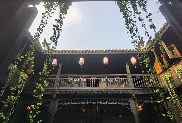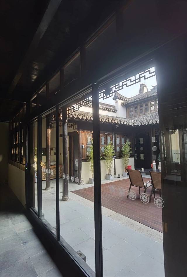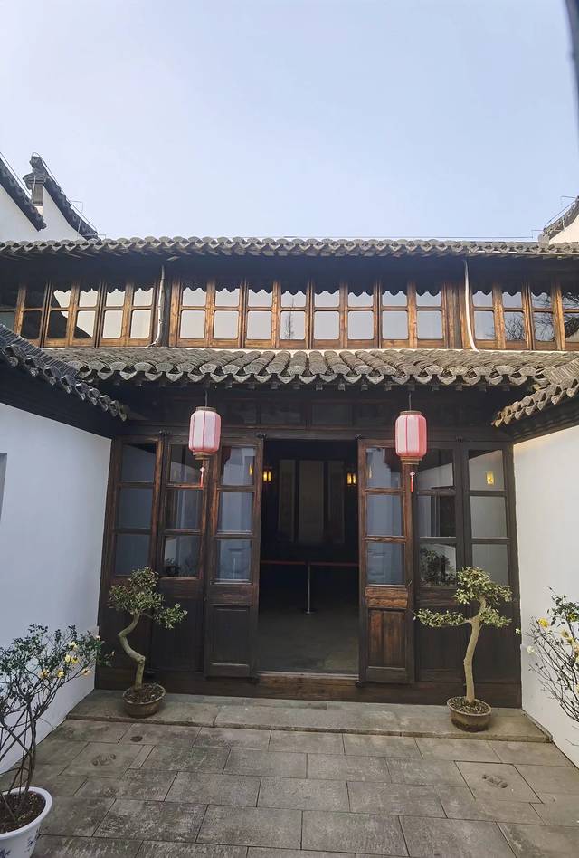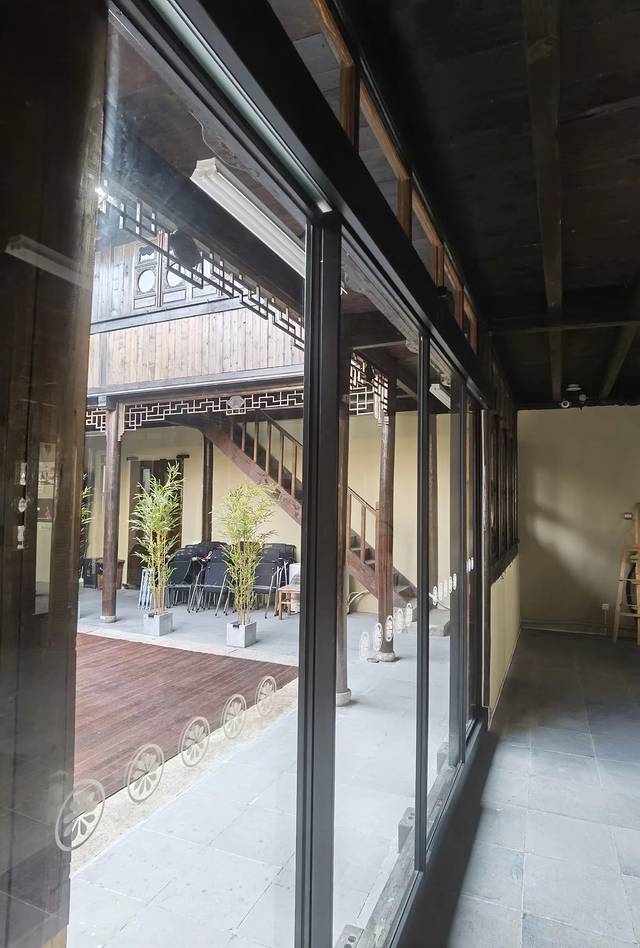 在室外,我们可以看到屋顶、檐口上的装饰,在室内,我们可以看到雕梁画栋,从外部整体去看,高大的山墙内的楼宇不是很起眼,但一进入宅门,却是柳暗花明又一村,内部的平面布局方式与北方四合院有着异曲同工之处,但没有北方四合院那么大气,却显得精巧灵动,这种曲径通幽的江南民居风格,很中国、很江南、很艺术,从内到外,感觉得到这是一栋可以阅读的古建筑。