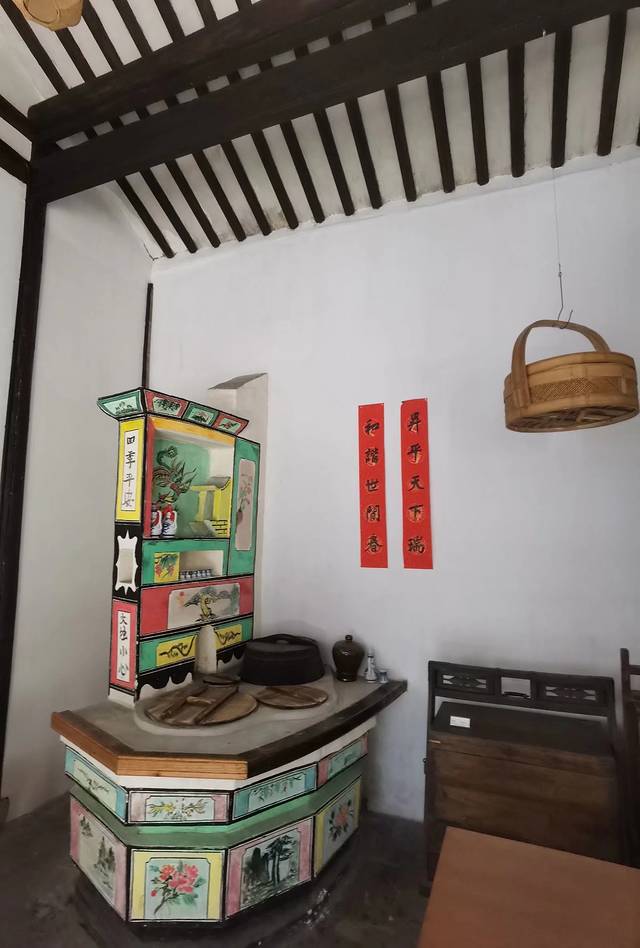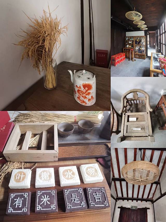 三是民俗农耕物品的展示。这个展示集中在第四进的大杂院内,大杂院的内部装饰和陈设都进行了重新排布,主要展示一些民国时期的老物件,如:摇椅、纸扇、竹篮、小孩桶、蒸糕模具等,复原了那个年代的厨房原貌,同时还介绍了农耕文化、当地民俗,以及一些民间工艺的制作方法。
