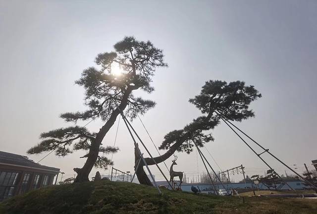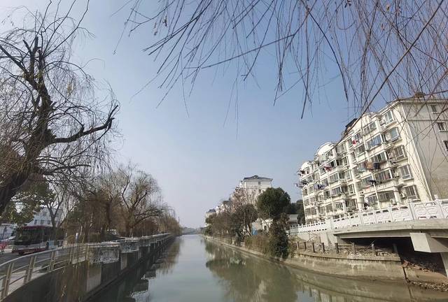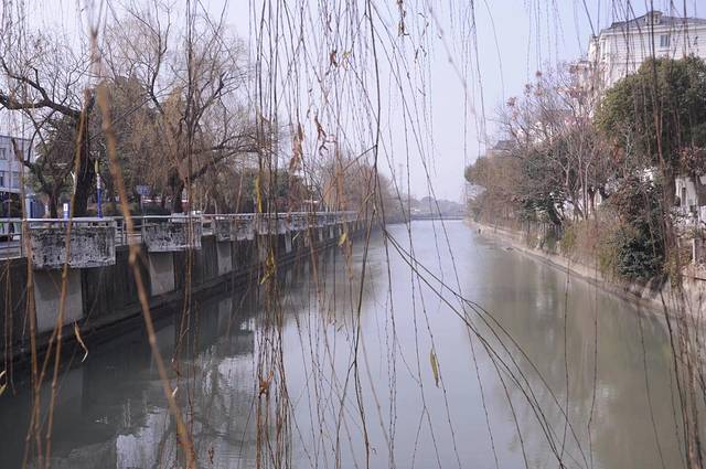 5、火车站对面的小河两岸。松江站对面有条清澈的小河,两岸种植着很多柳树,尽管是冬天,但婆娑的姿态依然楚楚动人,想必冬去春来,万物复苏时节,“飘缈微光照绿诗,树腰半露影参差,淡抹轻笼迷晓色,不知何处叫黄鹂”的景致,一定会呈现出来。