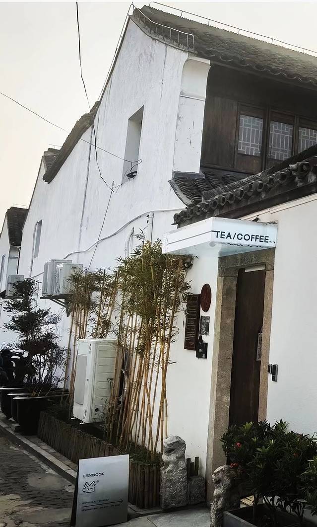 漫步走在松江仓城的中山西路上,突然发现了一座老房子,门旁标牌上写的“文物保护点,中山西路张氏宅(清代)”,一下子吸引了我的视线,大门上方的Logo“存在咖啡馆(Ennook coffee)”和从屋内飘逸出来浓郁香味,表明了这是一家咖啡馆。