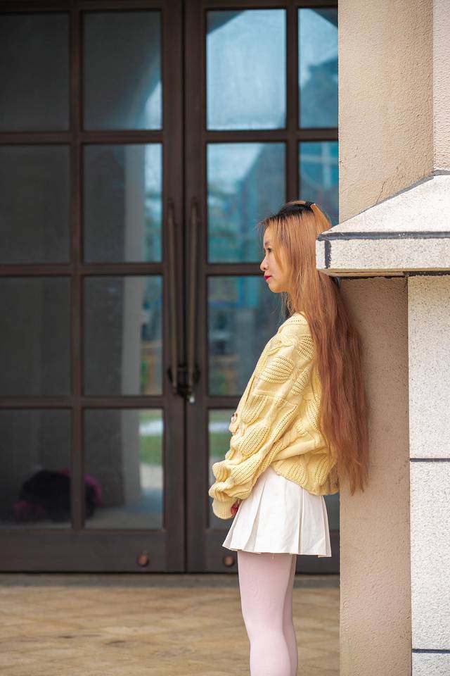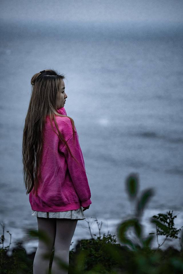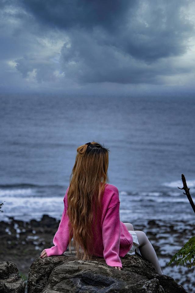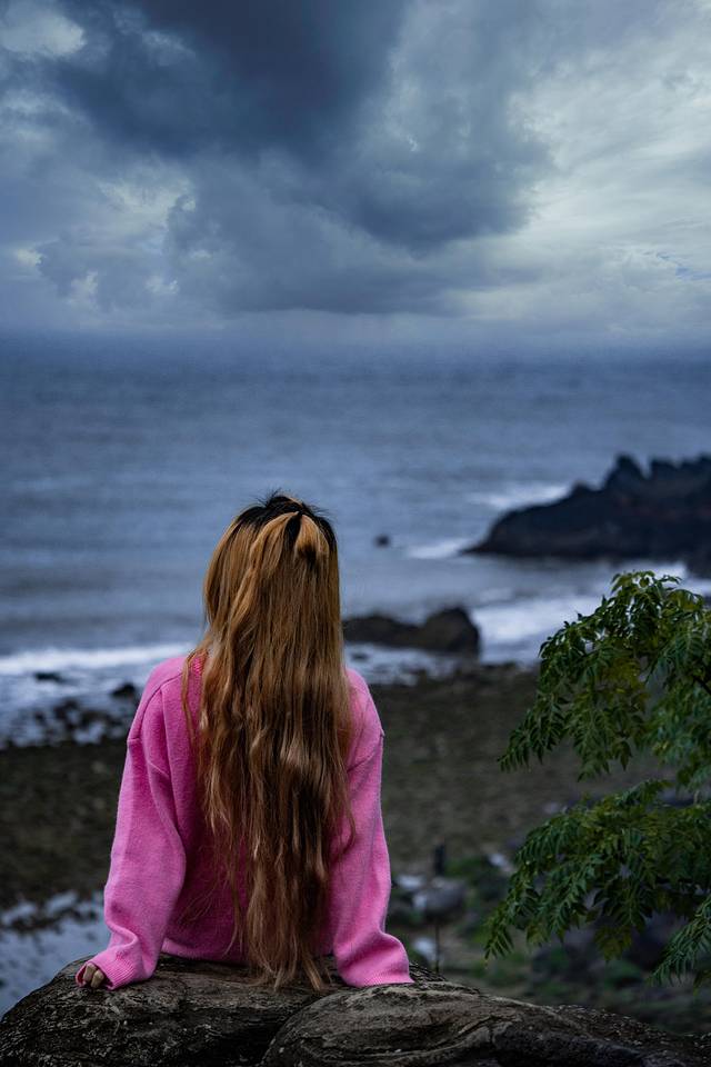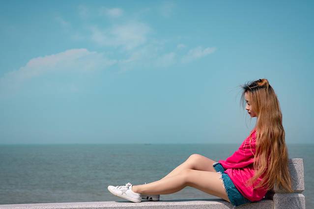 晴天可以穿一些颜色出挑的衣服,对比度很强,阴天可以穿的深色衣服,拍一些阴郁感的风格。