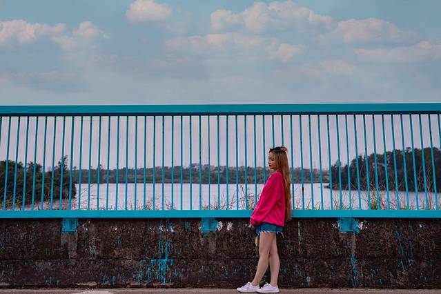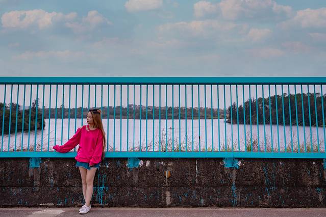 然后我们在机场周边找到了一个水库,拍了一组小清新照片。