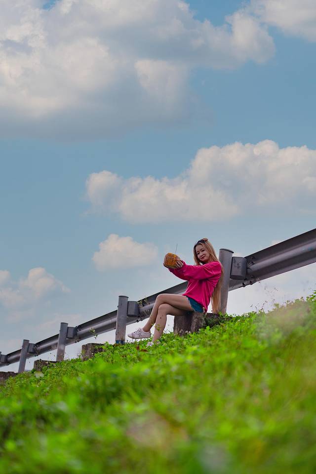 这块区域车也很少,比较安全。推荐带一些拍摄道具来,增加互动感。(椰子又派上用场啦!)