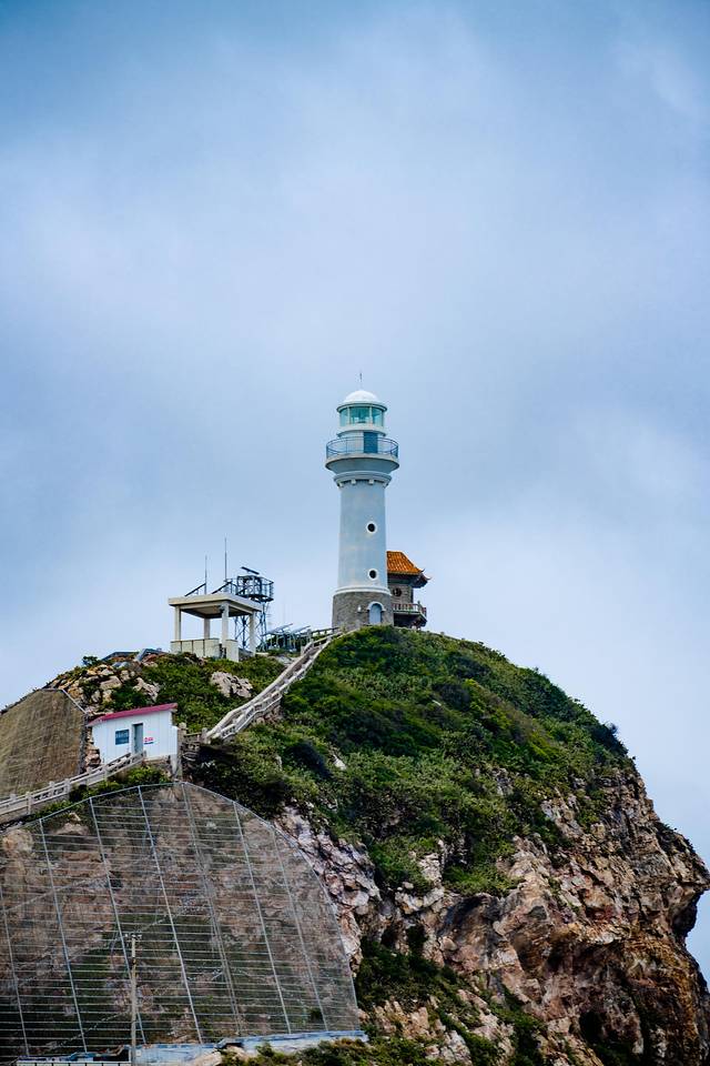 大约30多米高的小山坡上的灯塔是鱼鳞洲的地标建筑,也是西海岸的重要航标。