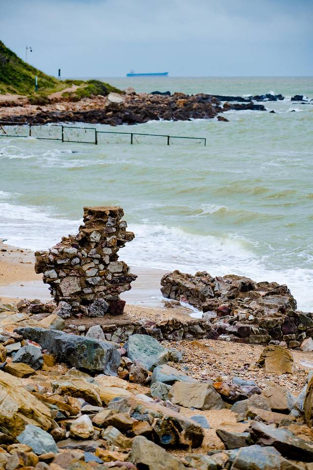 第一站来到了澄迈县的雷公岛,位于桥头镇的西北部,面向琼州海峡,海滩上都是大大小小的黑色石头,是早些年火山喷发后,岩浆流入大海又被冲上岸后一点点长年累月形成的自然奇观,至今已存在一万多年。