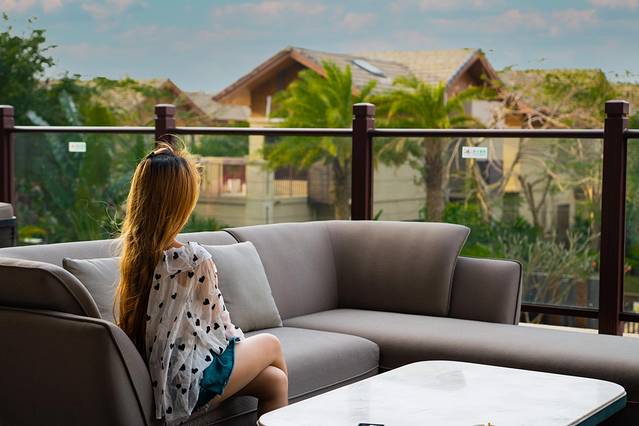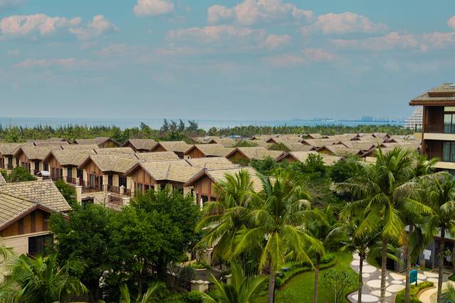 房间是可以遥望海景的,阳台外面是旁边的楼盘别墅区和椰林泳池景观,还是挺好看的。