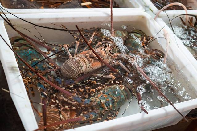 我们两本身胃口不大,琳琅满目的海鲜挑花了眼,最后看中了这个颜值比较高的大花龙,开价380/斤,我们还价到350/斤(我们不太会还价…应该还能更低的),还买了两个忘记了名字的螺。