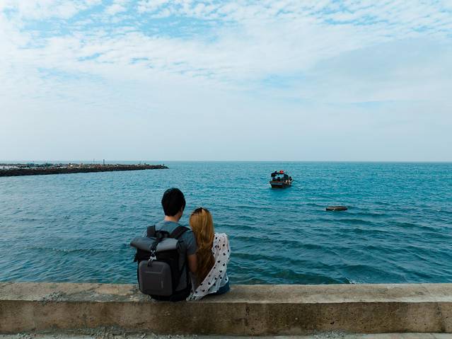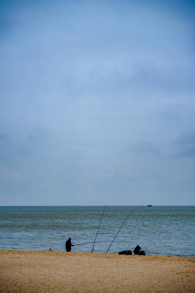 因为天气不好,来的人很少,只有几个当地人坐在海边钓鱼。