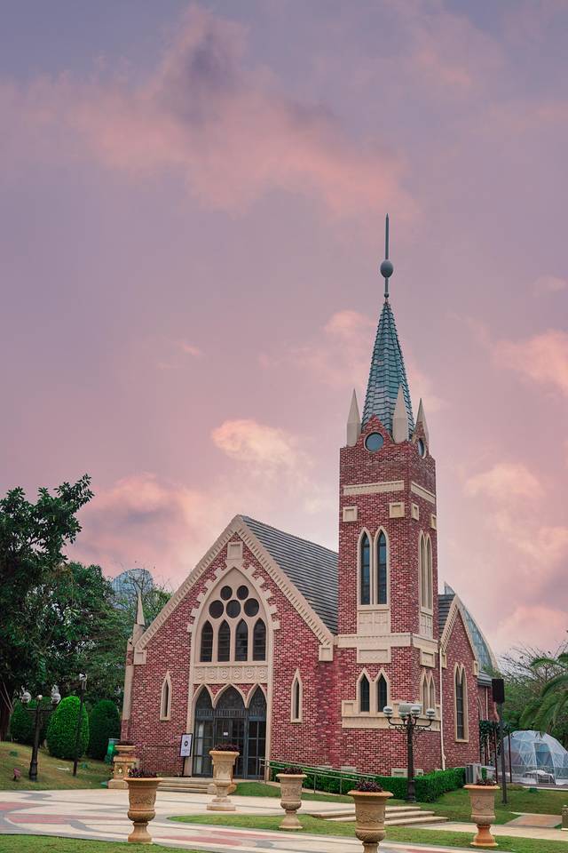 有大大小小好几座教堂,一些新人在这拍婚纱照。