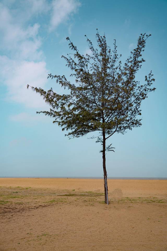 这棵树其实本身没什么特色,只是因为它独特的地理位置,广阔的沙滩上只有这一颗树而显得很特别。