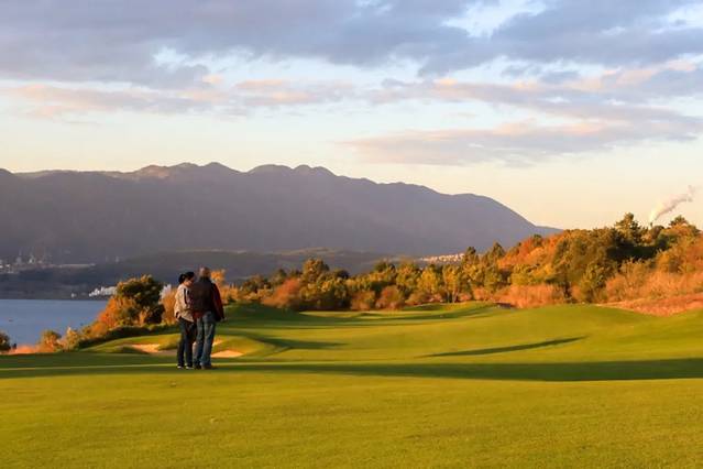 度假村的两块山景及湖景球场连续多次拿下各大高尔夫权威杂志奖项,被高尔夫球爱好者视为心目中最具挑战性的球场之一。就算不打球,也可以来场世界百佳球场观光之旅。下午五点半集合,三人乘坐一辆高尔夫球车,由员工行驶带大家绕着高尔夫球场逛上一圈,享受沿途好风景。